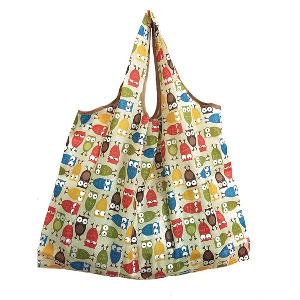 2018 New Lady Foldable Recycle Shopping Bag Eco Reusable Shopping Tote Bag Cartoon Floral Fruit Vegetable Grocery FS11
